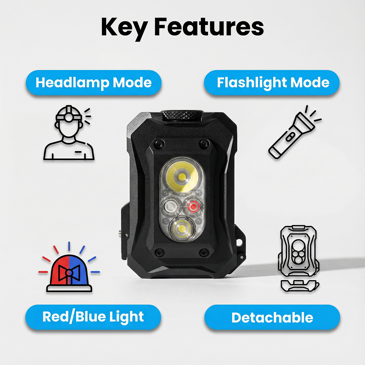 Der HL9 ist das ultimative hybride Beleuchtungswerkzeug, das nahtlos zwischen Hochleistungsscheinwerfer und kompakter Handtaschenlampe wechselt. Er ist sowohl für EDC-Zuverlässigkeit als auch für robuste Outdoor-Erkundung konzipiert und verfügt über ein leistungsstarkes 800-Lumen-Tricolor-LED-Array (Weiß, Rot und Blau). Mit seiner Dual-Fuel-Kompatibilität und abnehmbarer Halterung ist der HL9 stets einsatzbereit, egal ob Sie einen Pfad fahren, Hilfe anfordern oder tägliche Aufgaben ausführen.